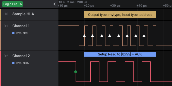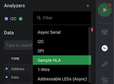 1. To test the new Sample HLA, capture any protocol data for one of the supported analyzers, and add the appropriate protocol analyzer. We’ve provided an I2C capture below in case you don’t have a protocol data recording available.