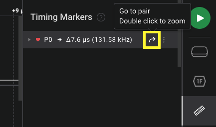 - Zoom in to the range defined by the timing marker pair by double-clicking on the “Go to pair” arrow button in the Timing Markers panel like shown in the image below. Do this for both instances of the software.
