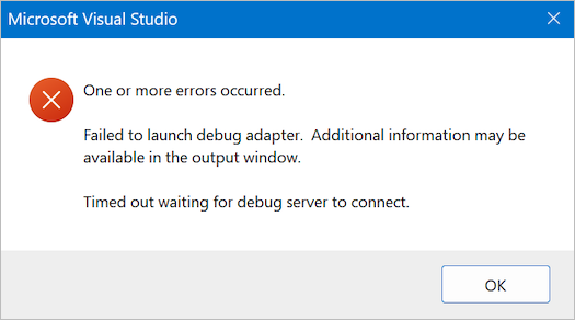 When debugging a custom low level analyzer, and when attempting to attach a debugger to the Logic 2 software via the instructions here, the following Microsoft Visual Studio error pop-up may appear.